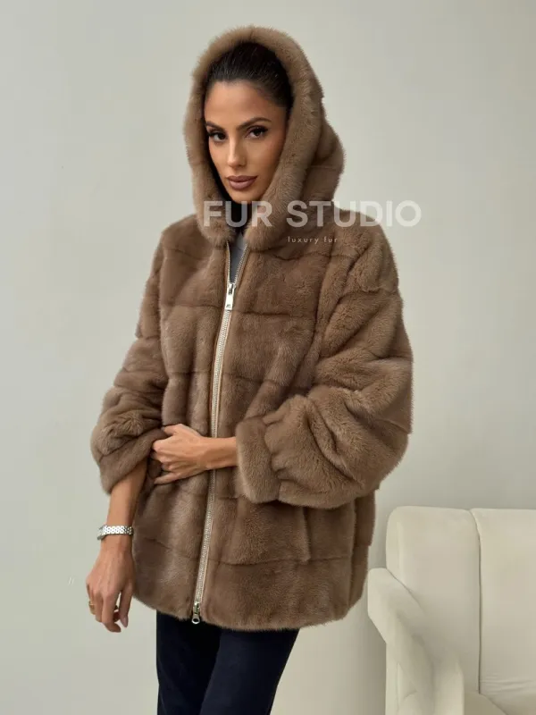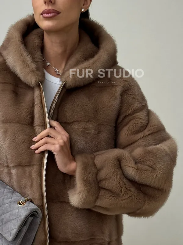 Бежевая норковая куртка с капюшоном доступна для покупки в нашем магазине Furs Studio в , с возможностью доставки в любой город России. Добавьте немного стиля и элегантности в свой гардероб с этой курткой, которая будет вам служить многие годы, подчеркивая ваш неповторимый стиль.