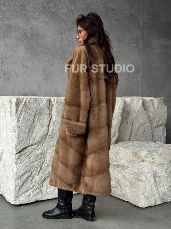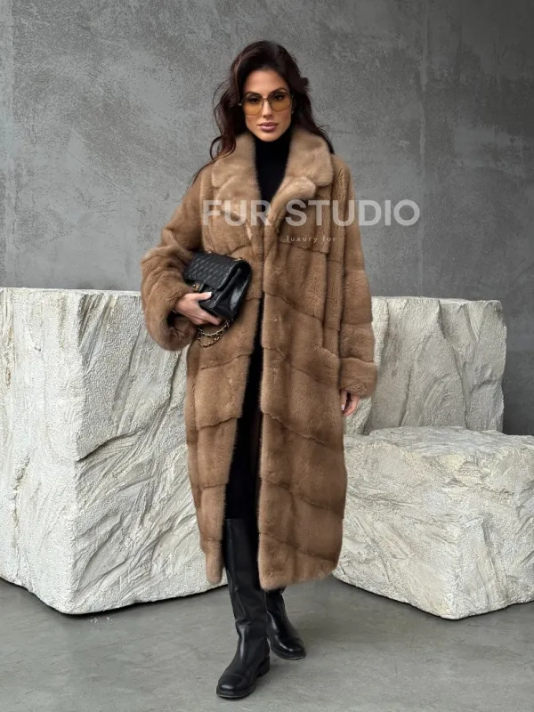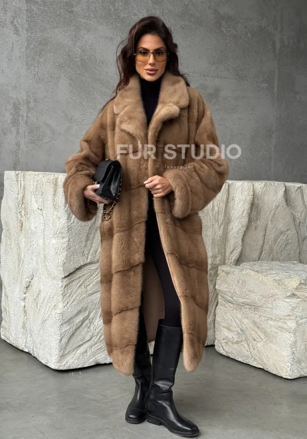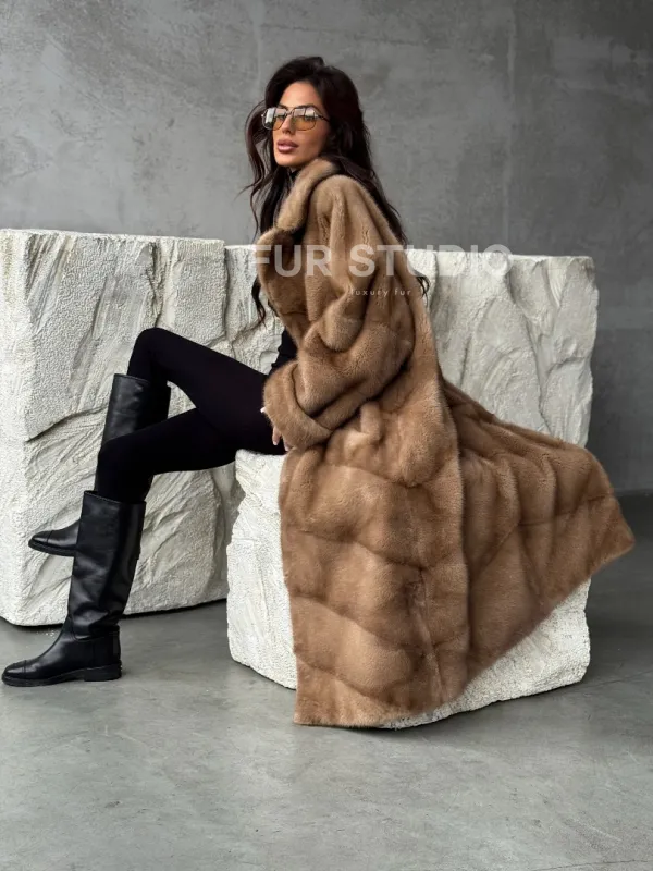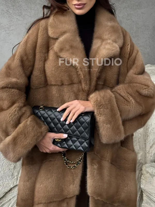 Бежевая норковая шуба oversize 102484