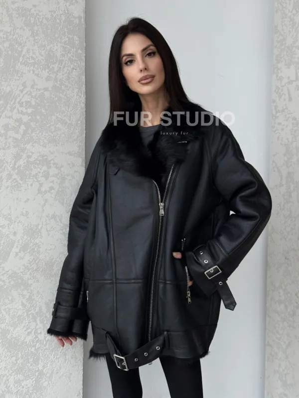 Черная дубленка - авиатор на тоскане. Модель предлагается в размерах от 42 до 58. Оптимальная длина моделей 85-90 см подчеркивает линии вашей фигуры. Эта дубленка станет неотъемлемой частью гардероба для тех, кто предпочитает роскошь и утонченность натуральной кожи.