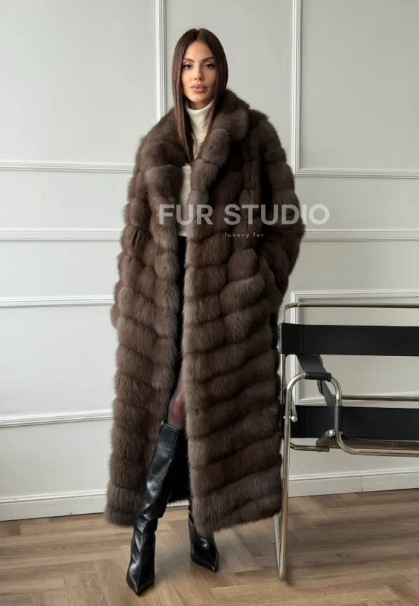 Длинная шуба из меха куницы Exclusive fur 101806