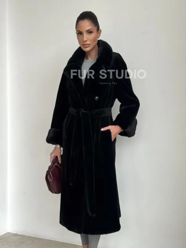 Элитная шуба из меха стриженой черной норки 101397