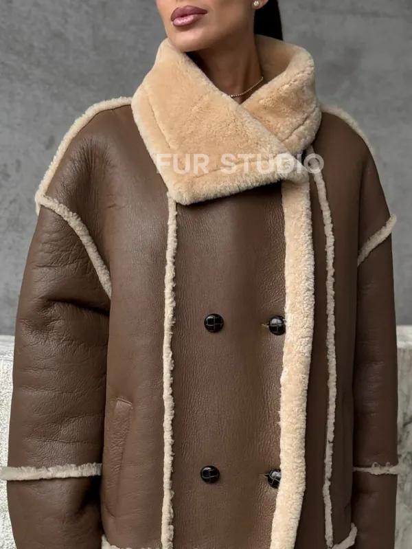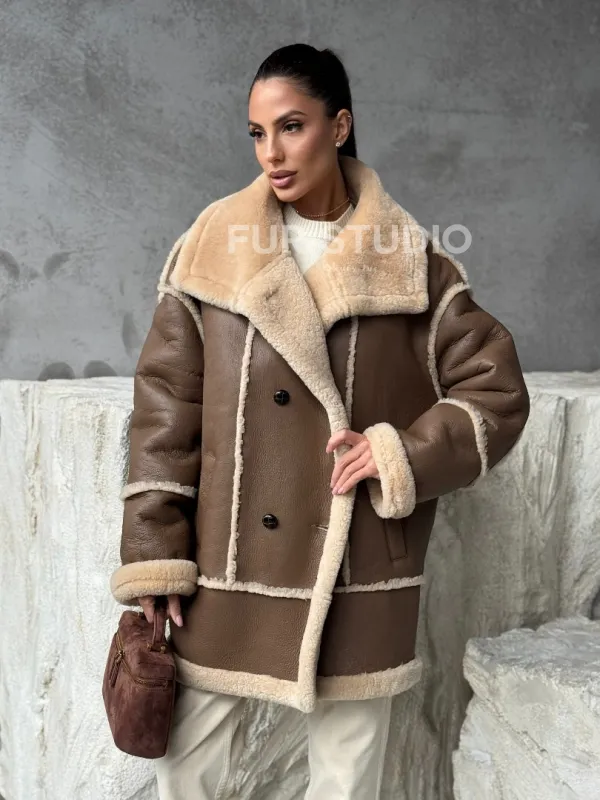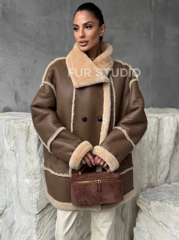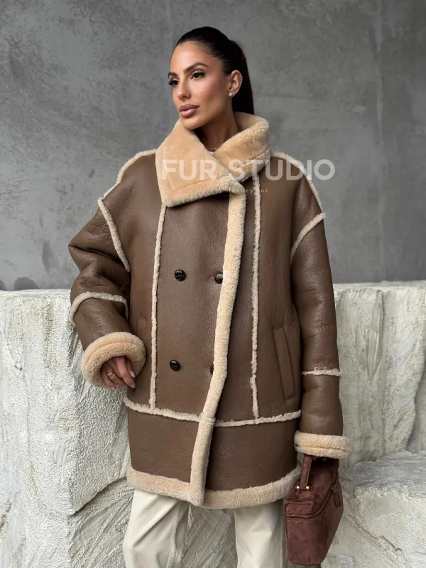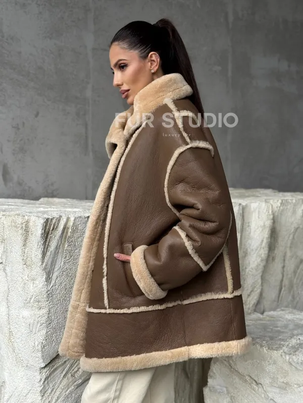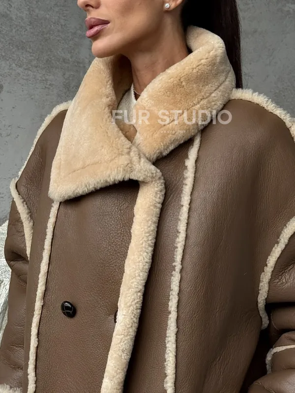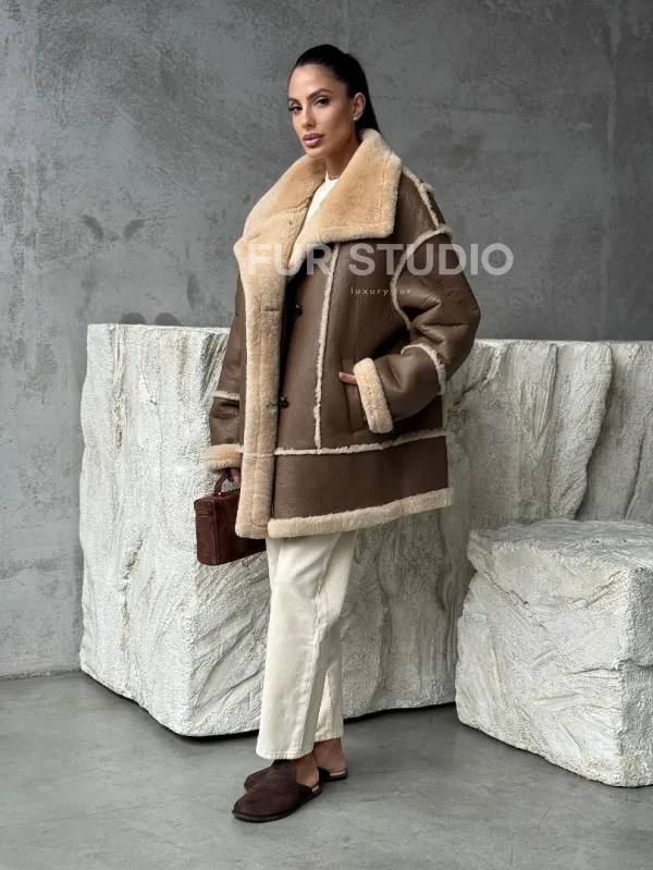Коричневая женская дубленка 102393