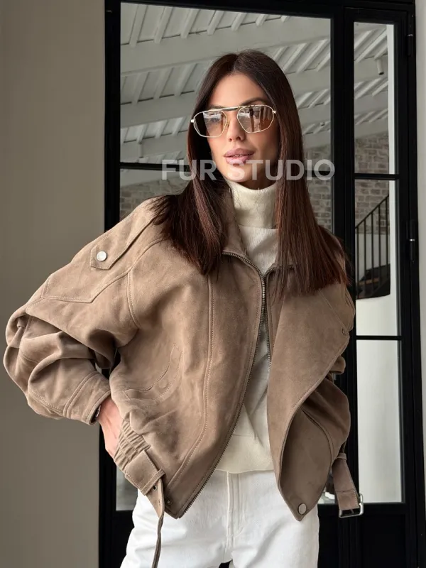 Куртка - бомбер весенняя оверсайз доступна для покупки в нашем шоуруме Furs Studio в , где также предоставляется удобная доставка во все города России.