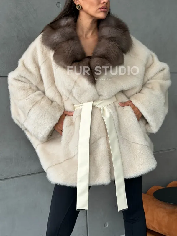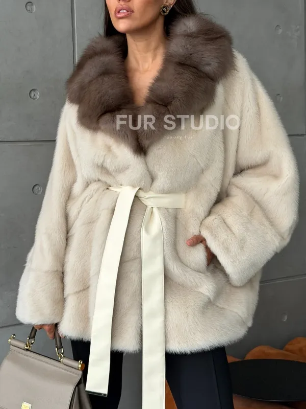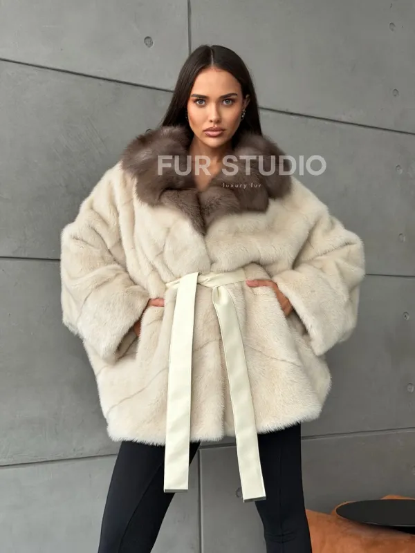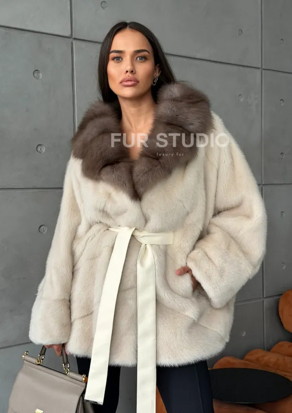 Норковая шуба - куртка с мехом куницы 102793