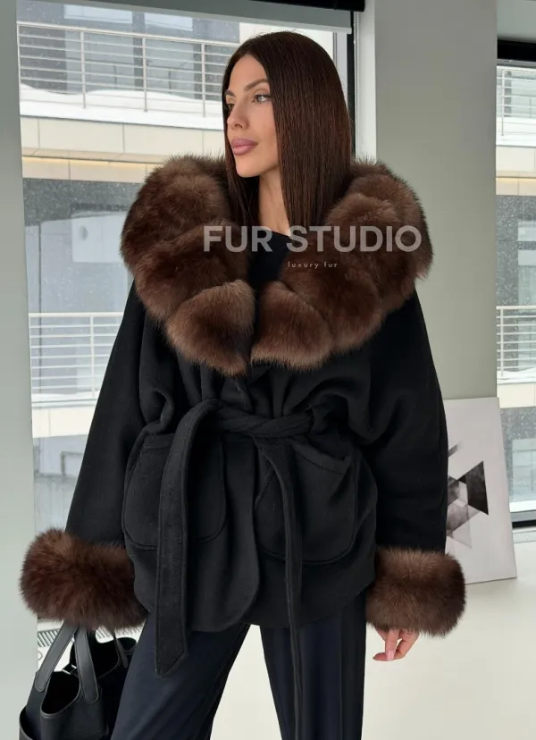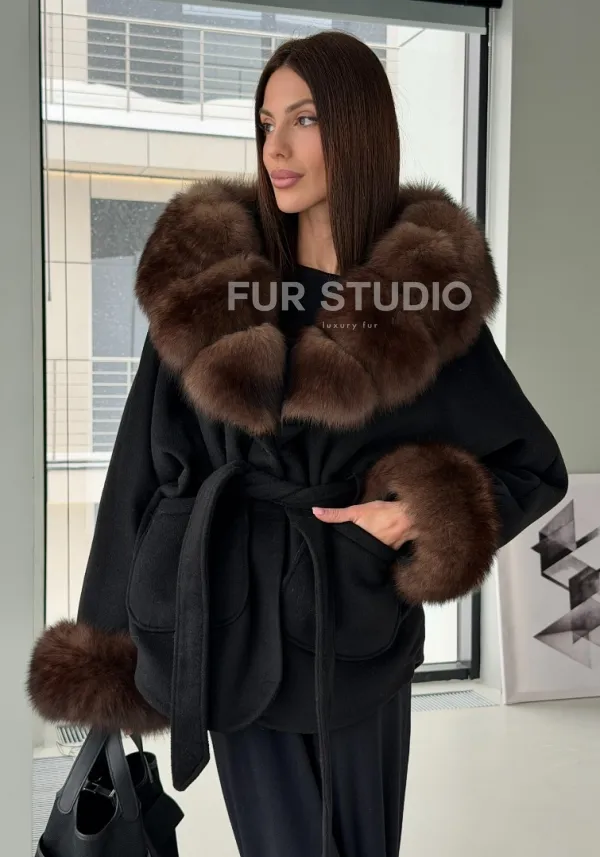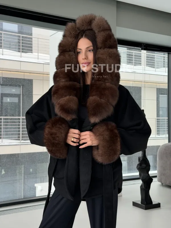 Пальто с капюшоном из финского песца 102906