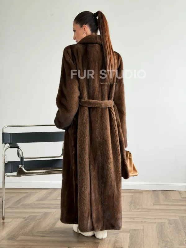 Прямая шуба из норки с поясом доступна для покупки в нашем шоуруме Furs Studio в . У нас так же есть доставка во все города России. Добавьте немного роскоши в свой гардероб с этой шубой, которая будет служить вам многие годы.
