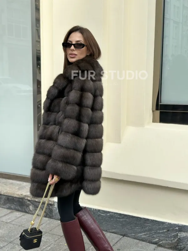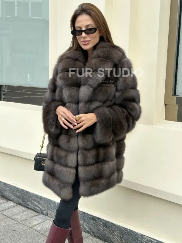 Длина комфортна в носке и не сковывает движений. Роскошный воротник акцентирует внимание на изящной шее и не даст ей замерзнуть в непогоду. Дополните образ статусной сумочкой и комфортной обувью, вы готовы для выхода в свет. Купить роскошную шубу из меха соболя могут девушки, которые разбираются в моде и любят приковывать взгляды к своей персоне.