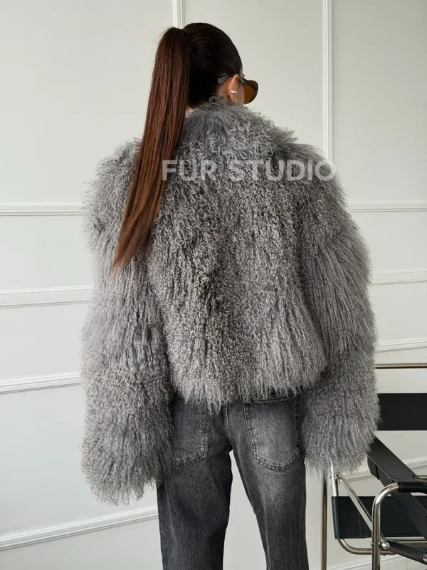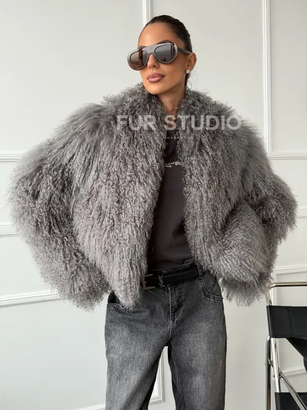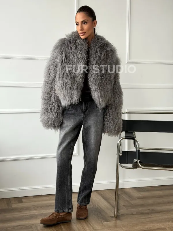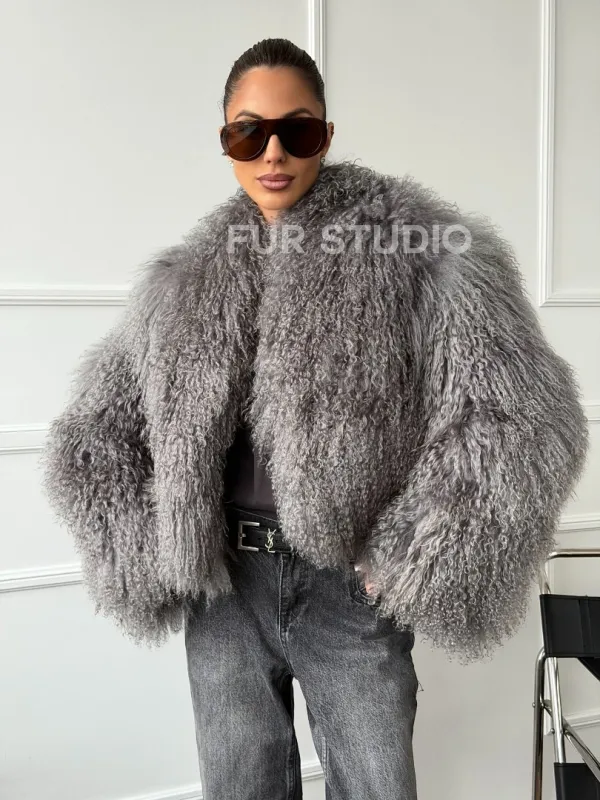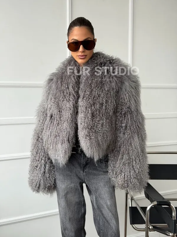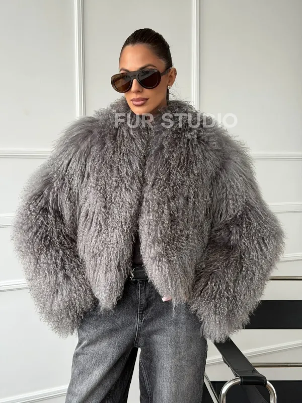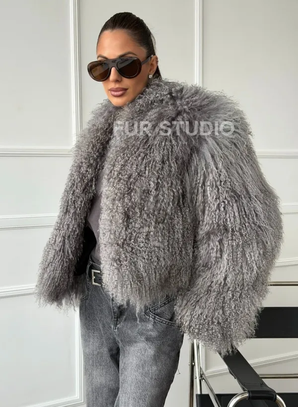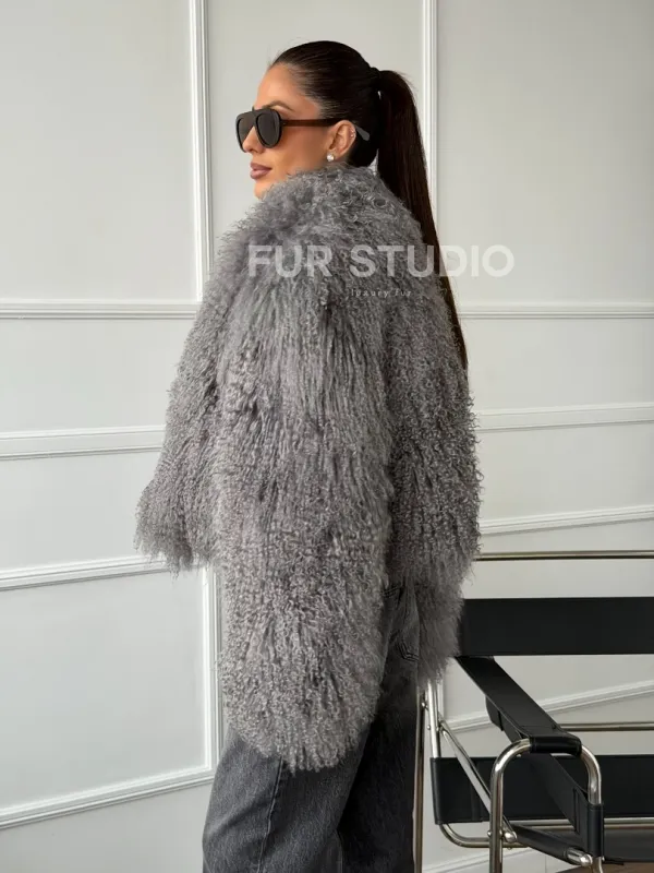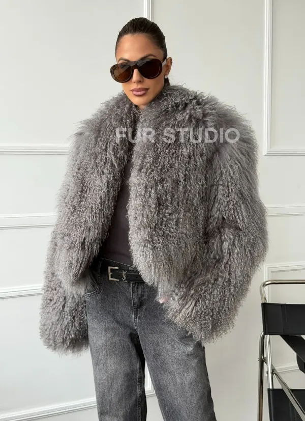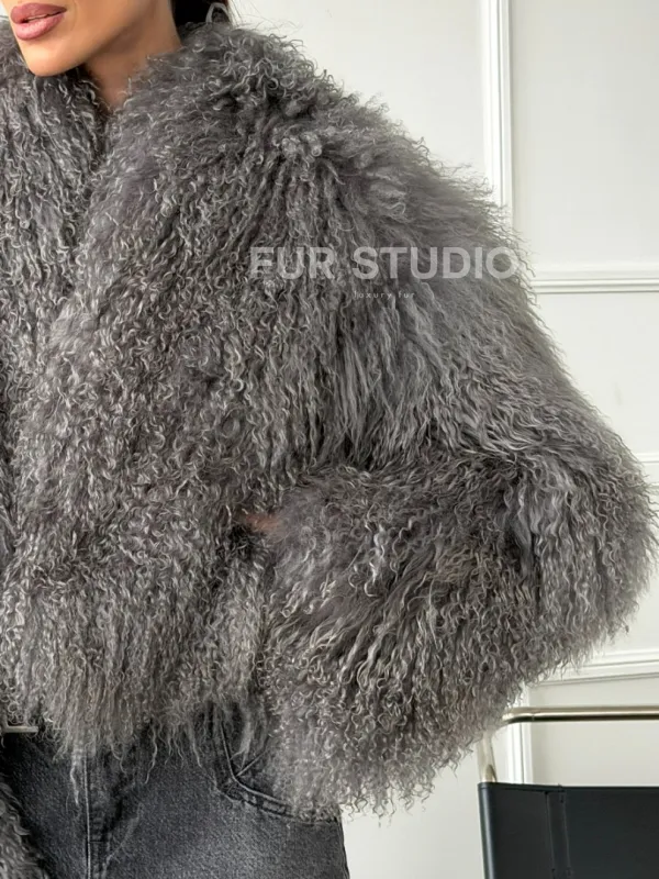 Серая шубка из меха ламы 102668