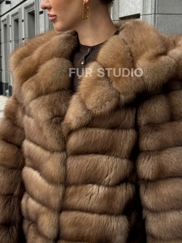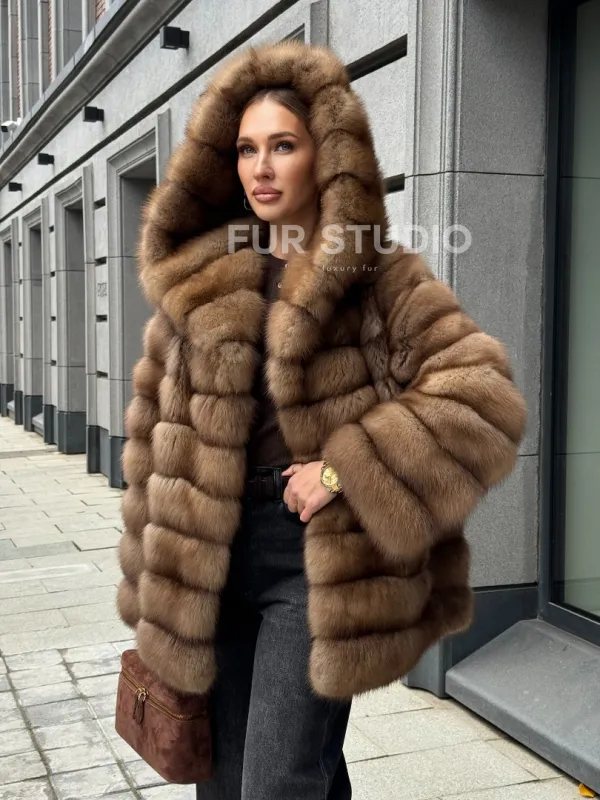 Шуба из натурального меха куницы с капюшоном доступна для покупки в нашем шоуруме Furs Studio в . У нас так же есть доставка во все города России. Добавьте немного роскоши в свой гардероб с этой шубой, которая будет служить вам многие годы.