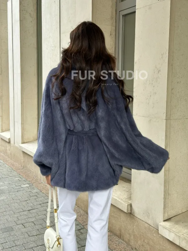 Шуба норковая летучая мышь - цвет джинс 100920