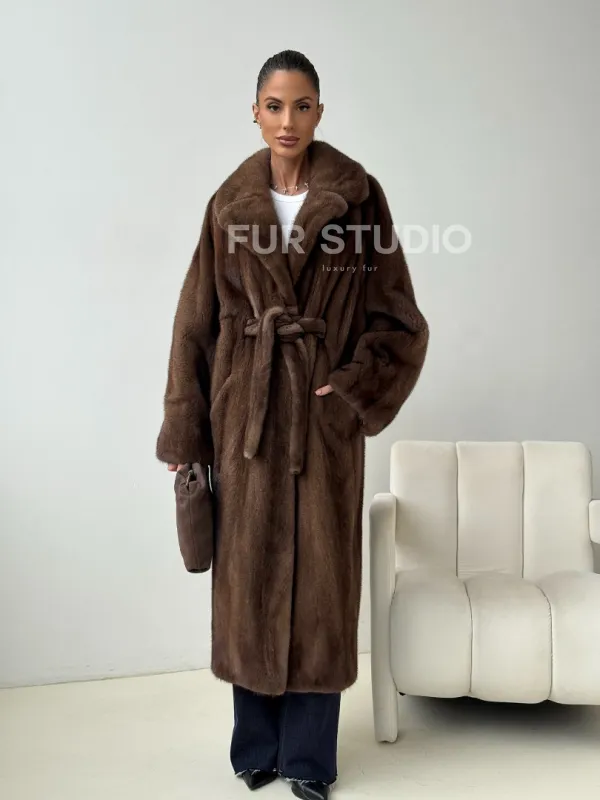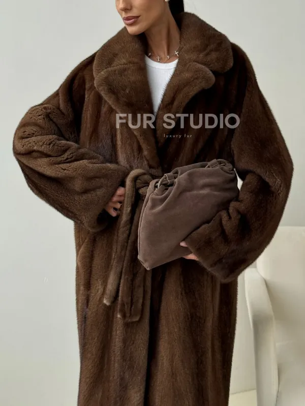 Мех данной шубы аукционная норка , цвет коричневый. Предлагается в размерах от 42 до 54. Длина модели 115-120 см, что выгодно подчеркивает фигуру девушек. Эта модель идеально подойдет для девушек и женщин, предпочитающих роскошные натуральные меха.