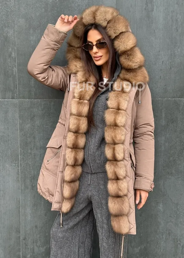 Женский пуховик с мехом куницы 102412