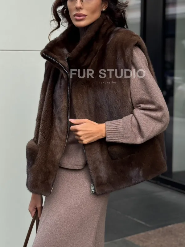 Жилет из норки доступен для покупки в нашем шоуруме Furs Studio в . Мы также предлагаем удобную доставку во все города России. Приобретите немного роскоши для вашего гардероба с этой осенью-зимой!